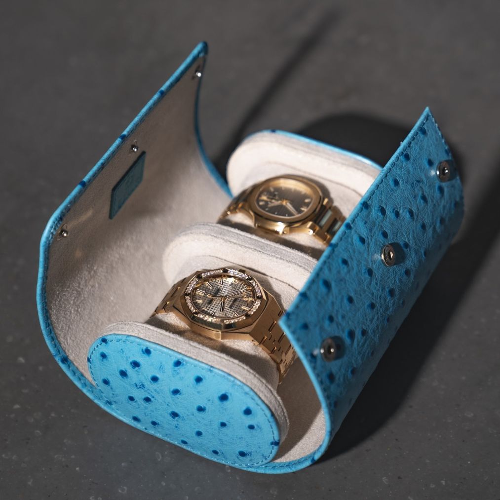Etier Gusto Double Watch Roll Aqua Ostrich Leather