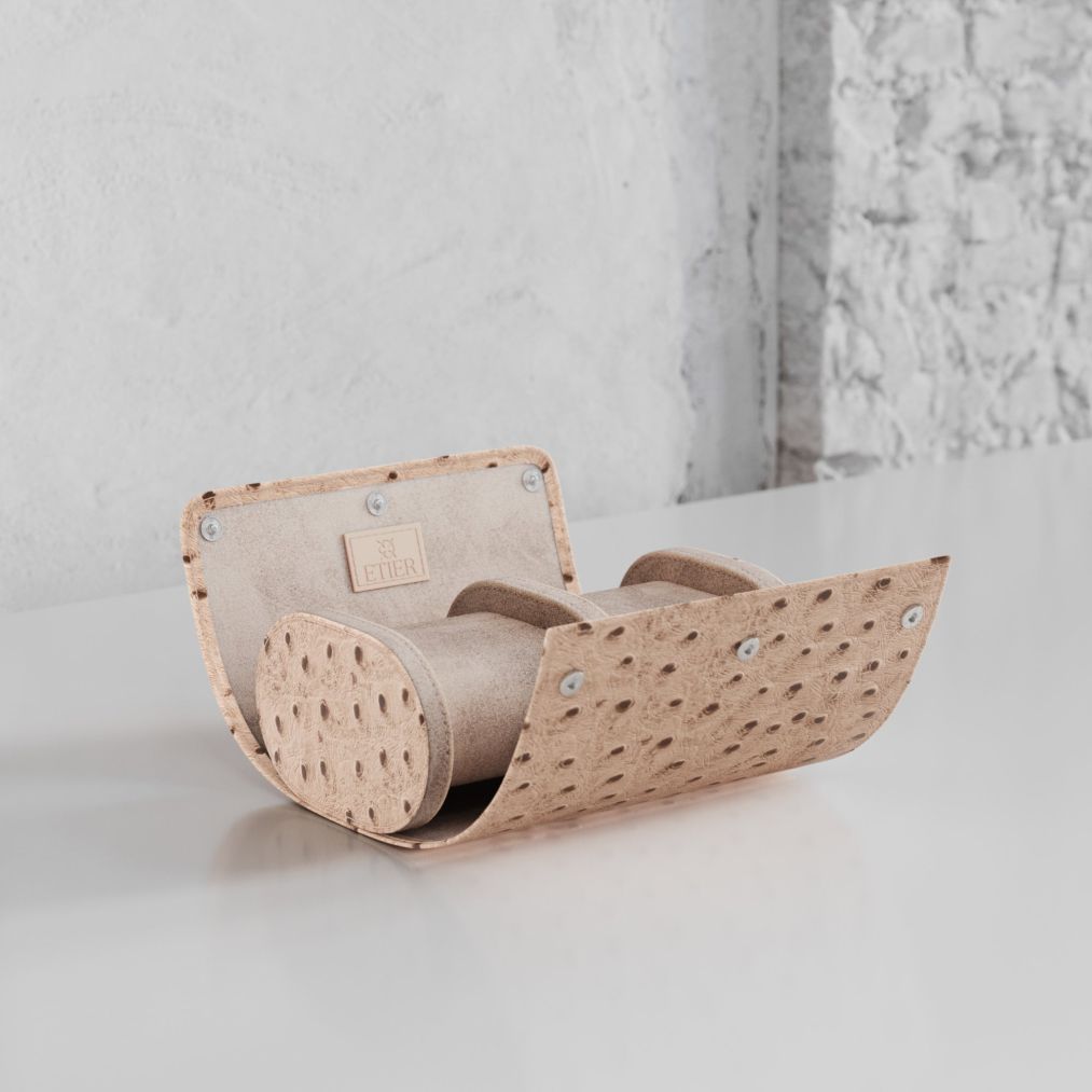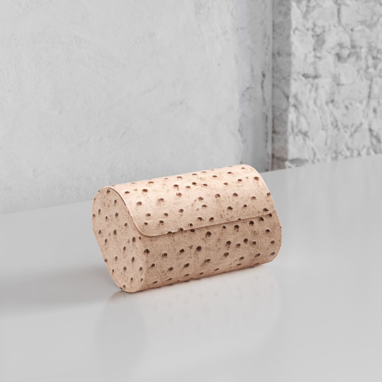 Immaculately crafted using the highest quality leather in a cool modern cappuccino, the luxury watch roll is finished with a perfect pressing of a quill pattern which is synonymous with ostrich skin. It also features a number of luxury details including meticulous hand-stitching, interior cushioning, and a soft taupe suede lining.