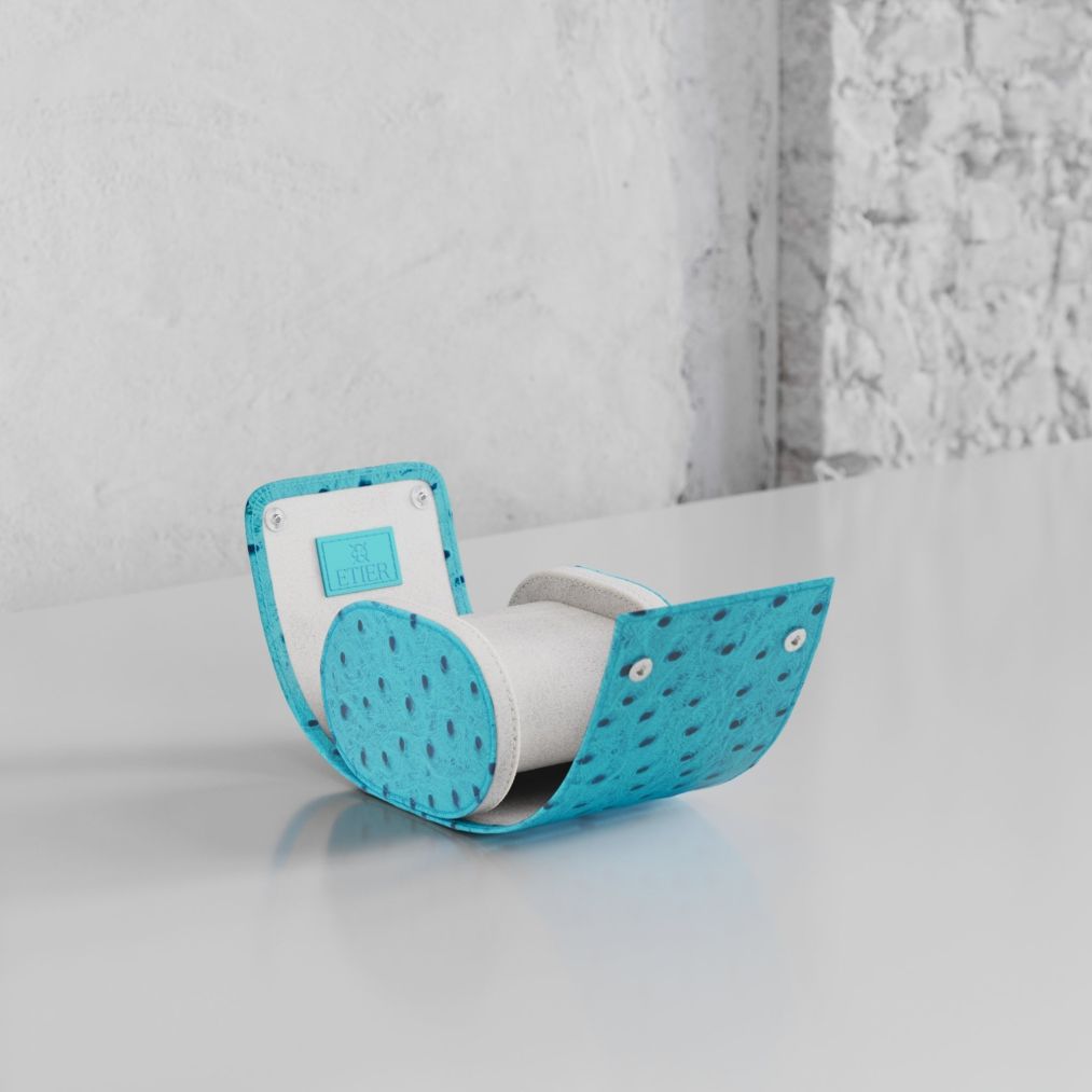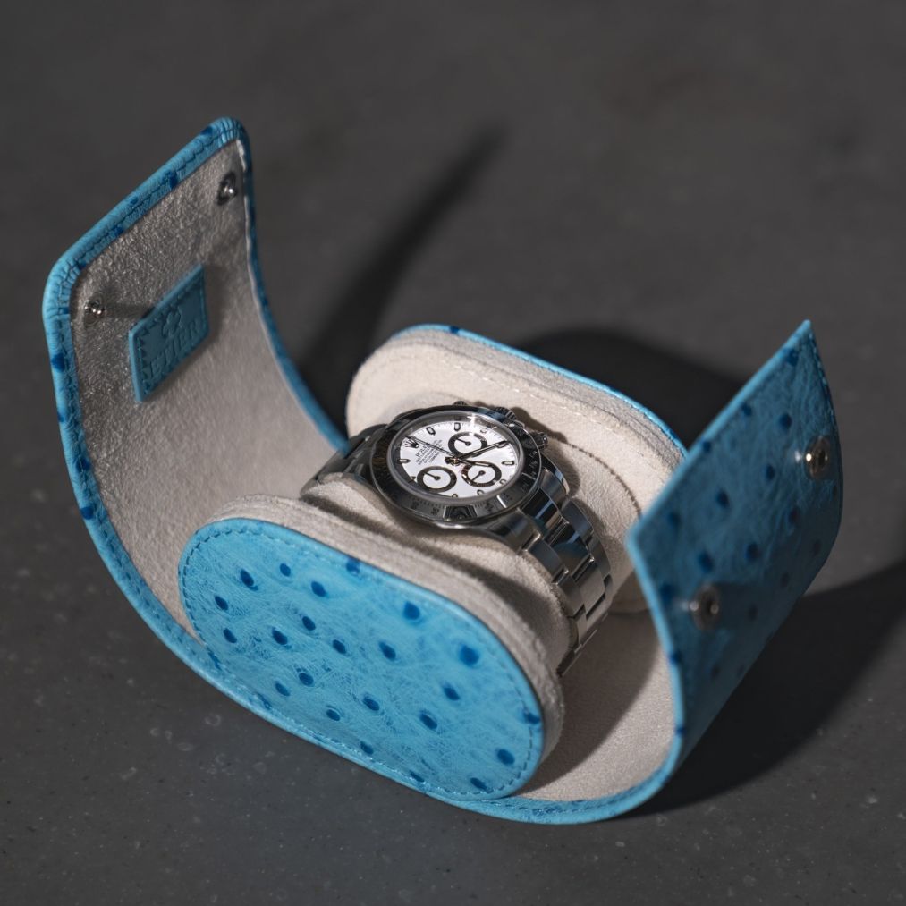 Etier Gusto Single Watch Roll Aqua Ostrich Leather