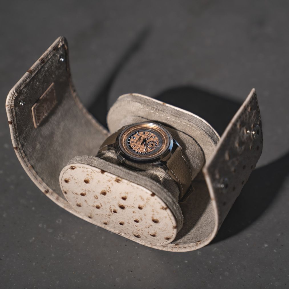 Etier Gusto Single Watch Roll Light Cappuccino Ostrich Leather