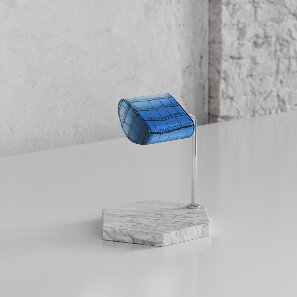 Etier Single Watch Stand - Carrara Marble & Blue Crocodile Leather