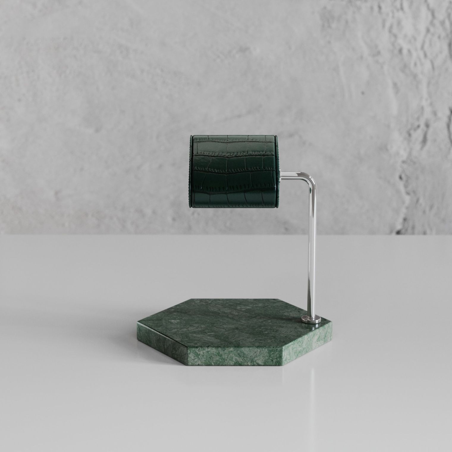 Etier Single Watch Stand - Verde Marble & Green Crocodile Leather