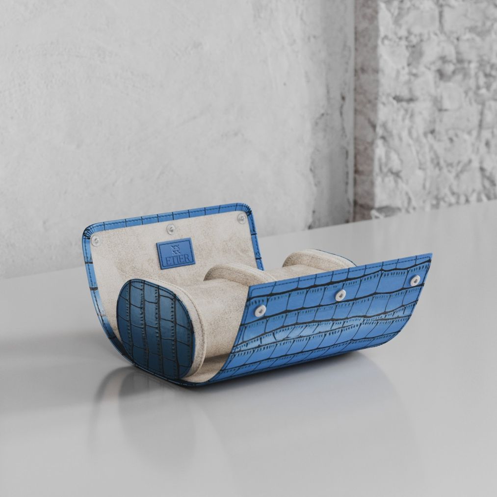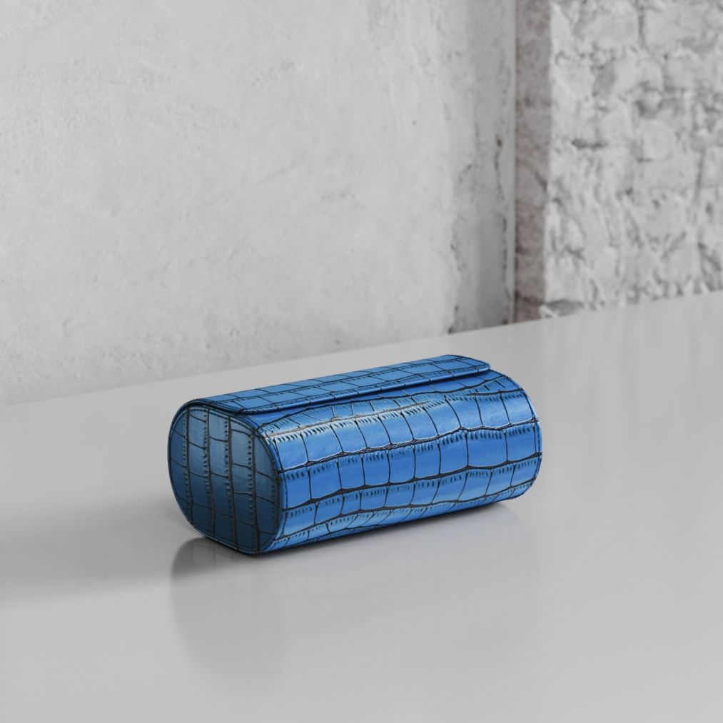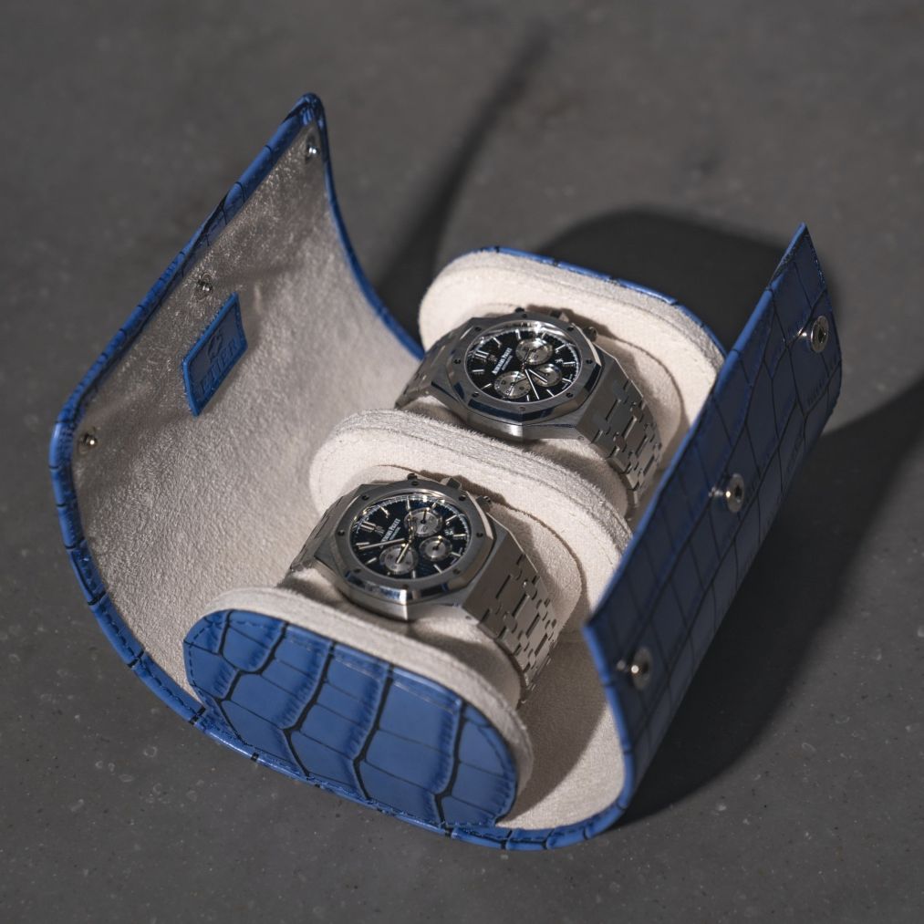 Etier Verdi Double Watch Roll Blue Crocodile Leather