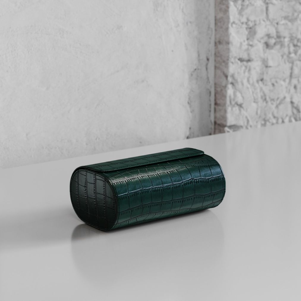 Etier Verdi Double Watch Roll Green Crocodile Leather