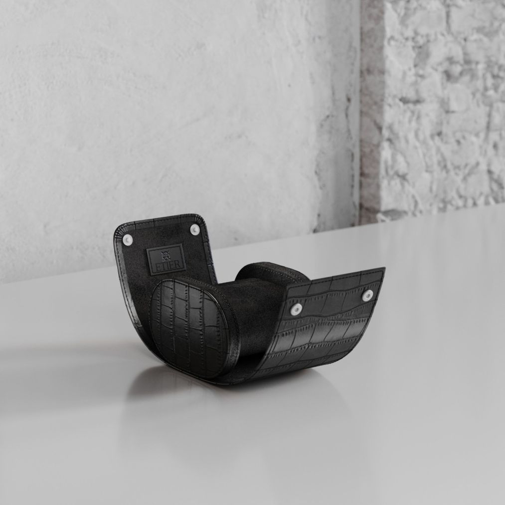 Etier Verdi Single Watch Roll Black Crocodile Leather