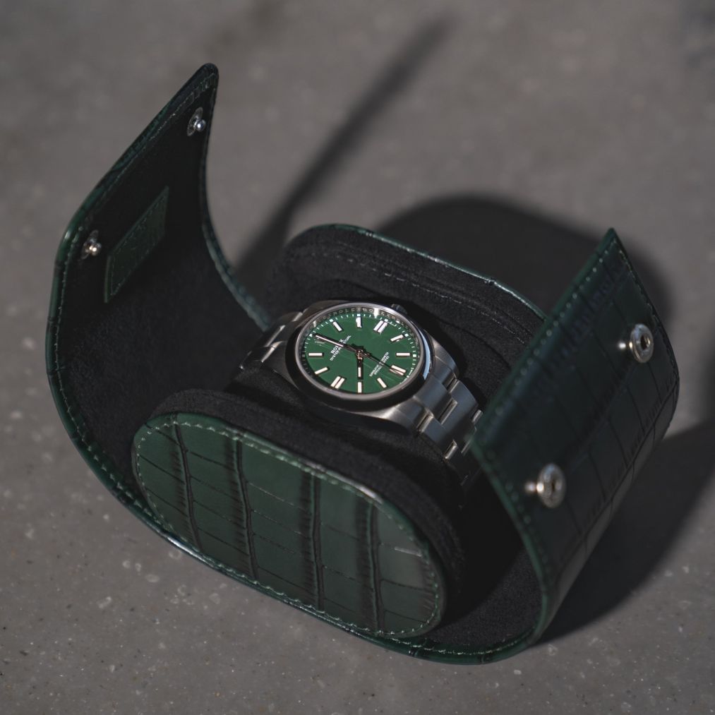 Etier Verdi Single Watch Roll Green Crocodile Leather