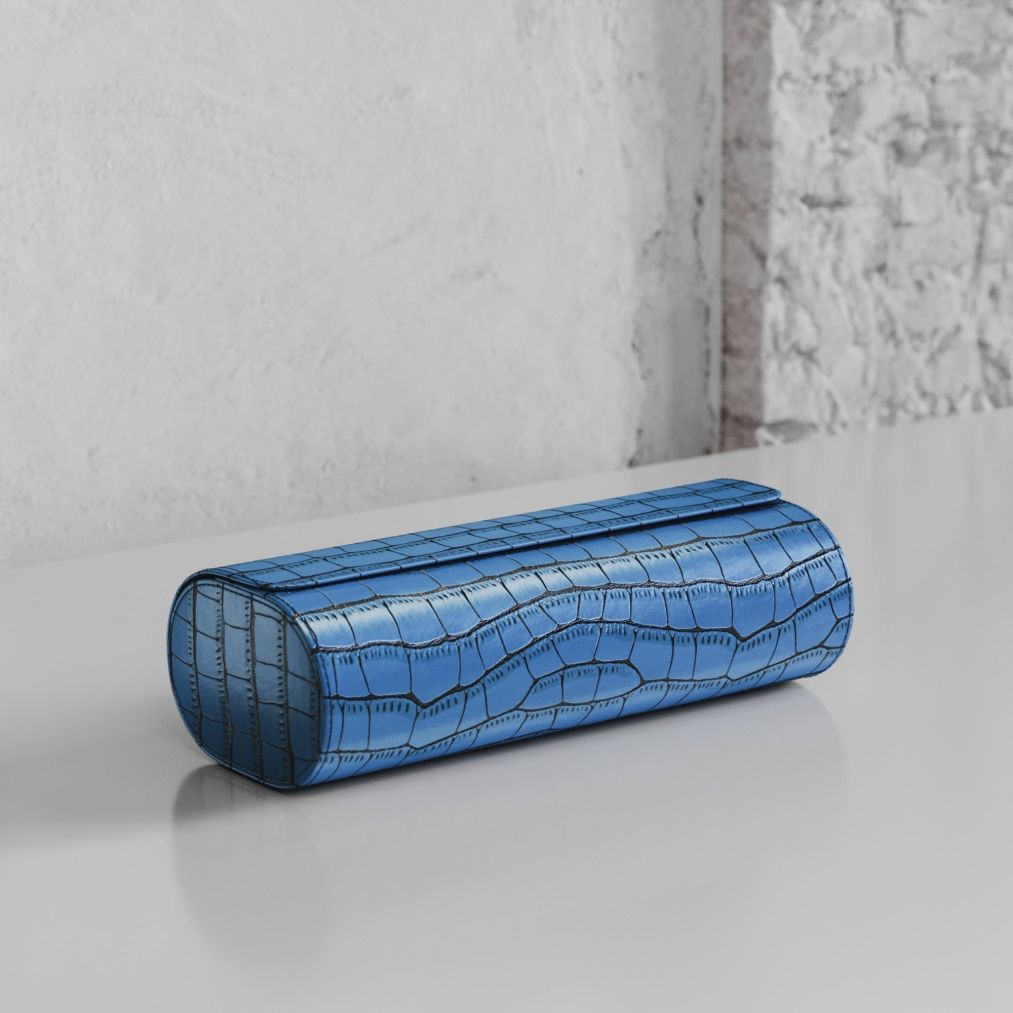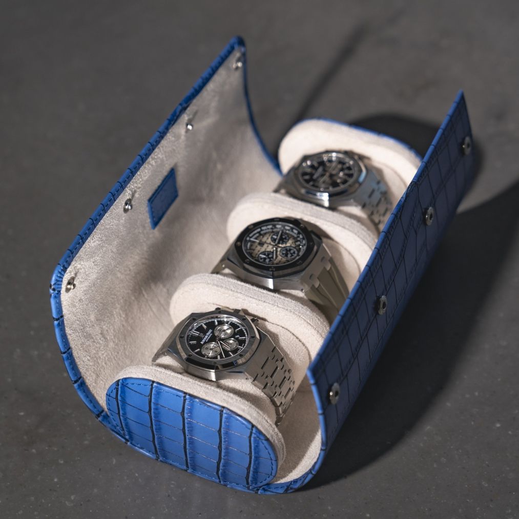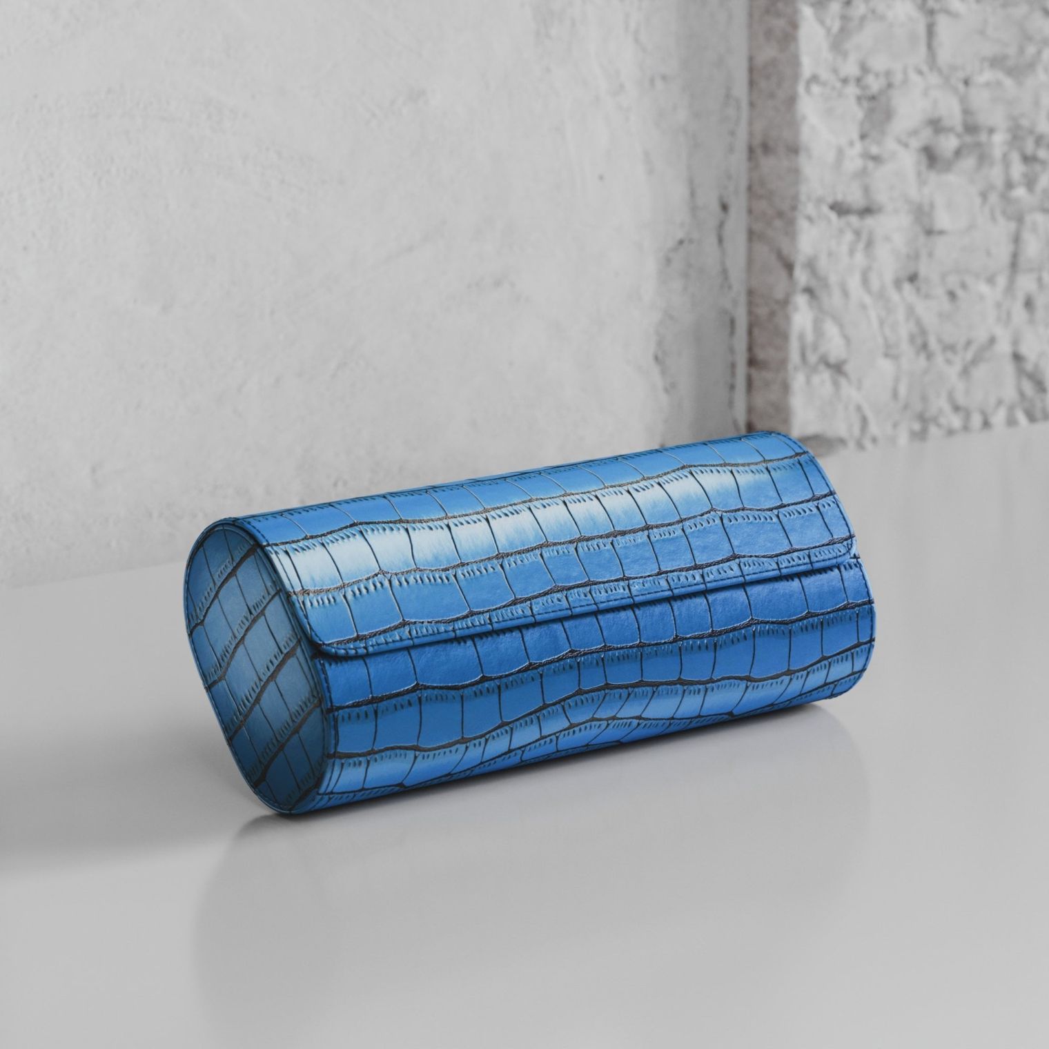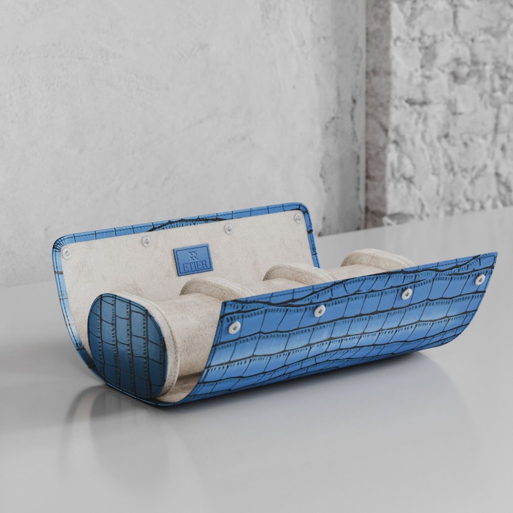 Etier Verdi Triple Watch Roll Blue Crocodile Leather