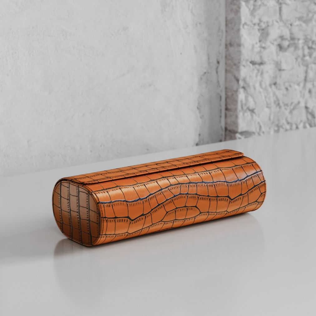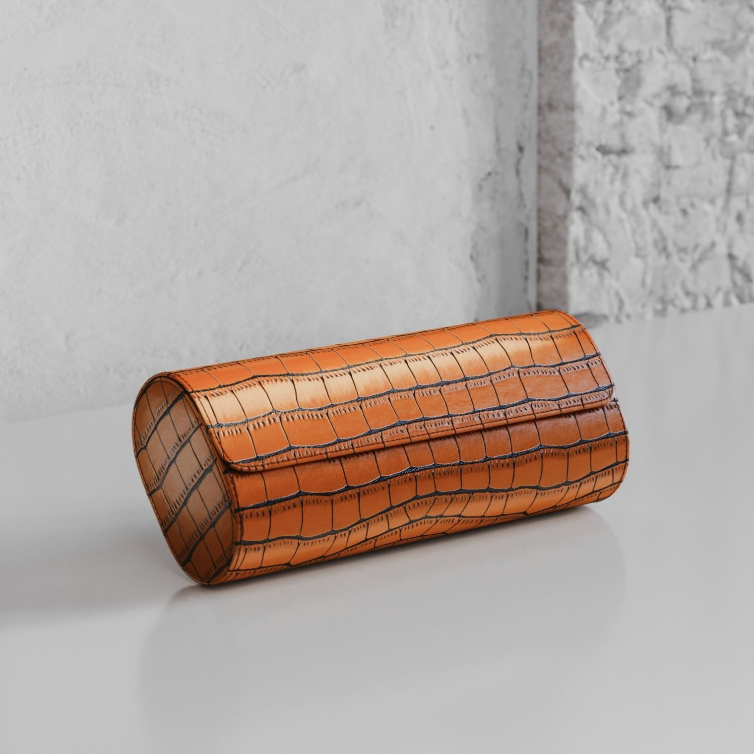 Combining a contemporary British aesthetic with traditional craftsmanship, the luxury watch roll is made from the highest quality leather in a timeless tan shade, and pressed with the polygon pattern of crocodile skin. To ensure that your valuable watches are secure even when they’re in transit, the watch roll also features interior cushioning to hold each piece in place, as well as a soft brown suede lining to prevent scuffs and scratches.