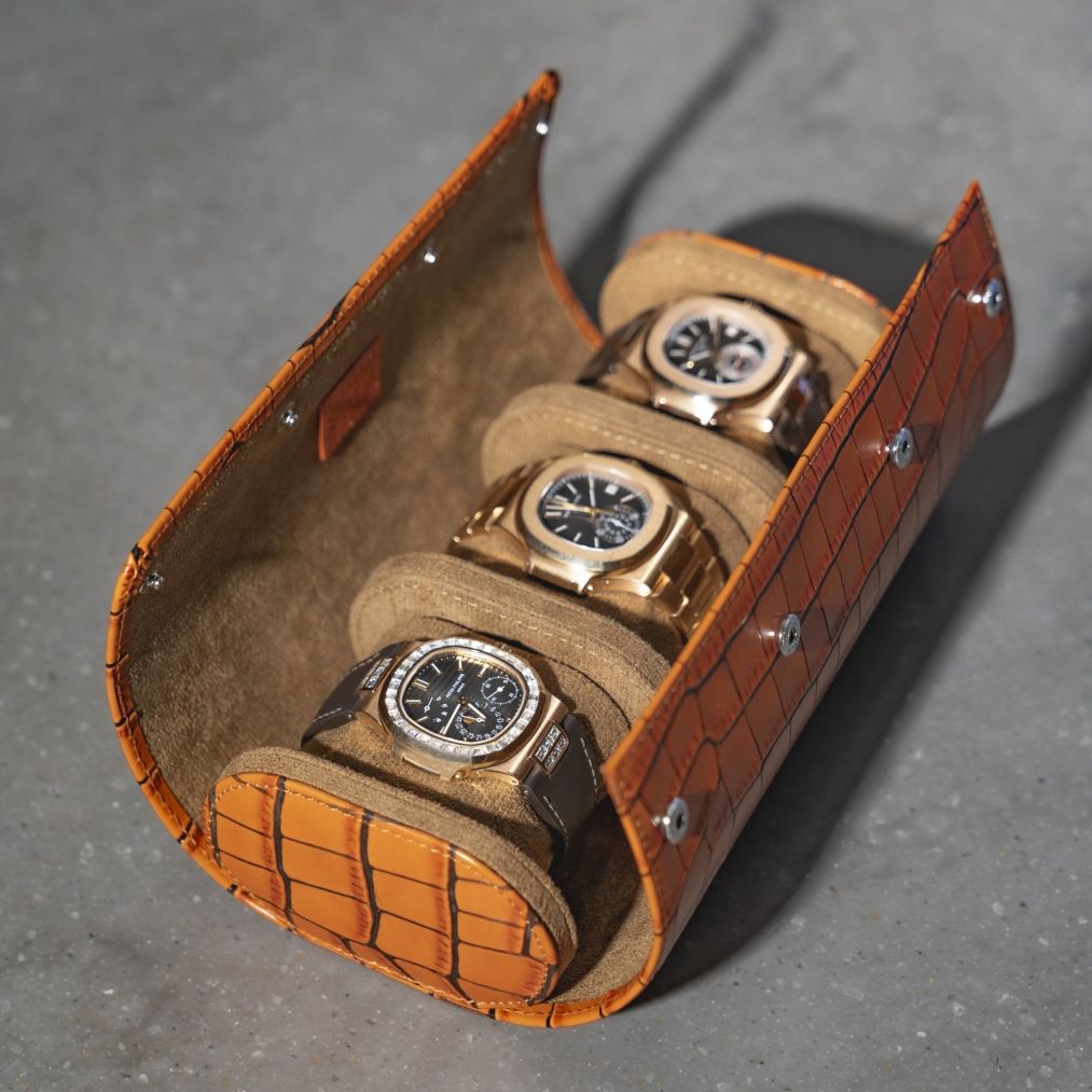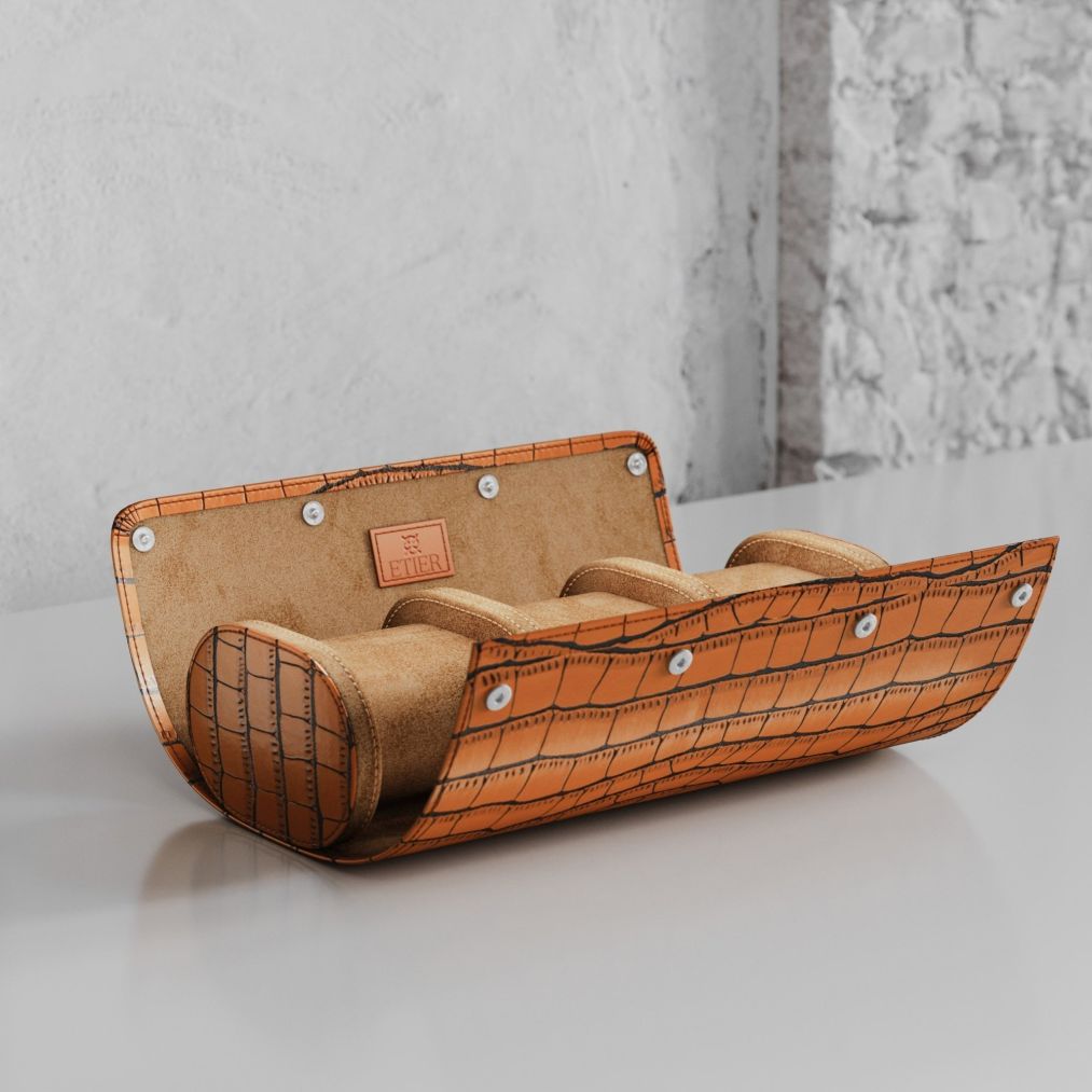 Etier Verdi Triple Watch Roll Tan Crocodile Leather