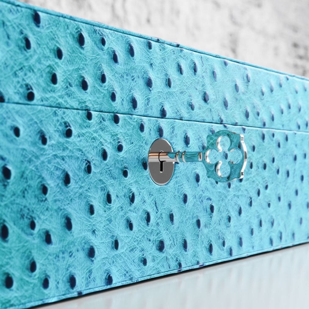 Etier Watch Rolls & Case Aqua Ostrich Leather Set