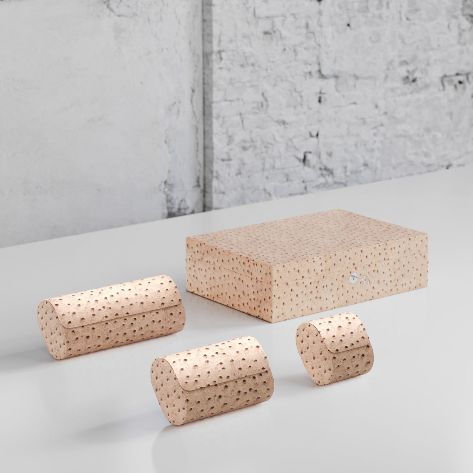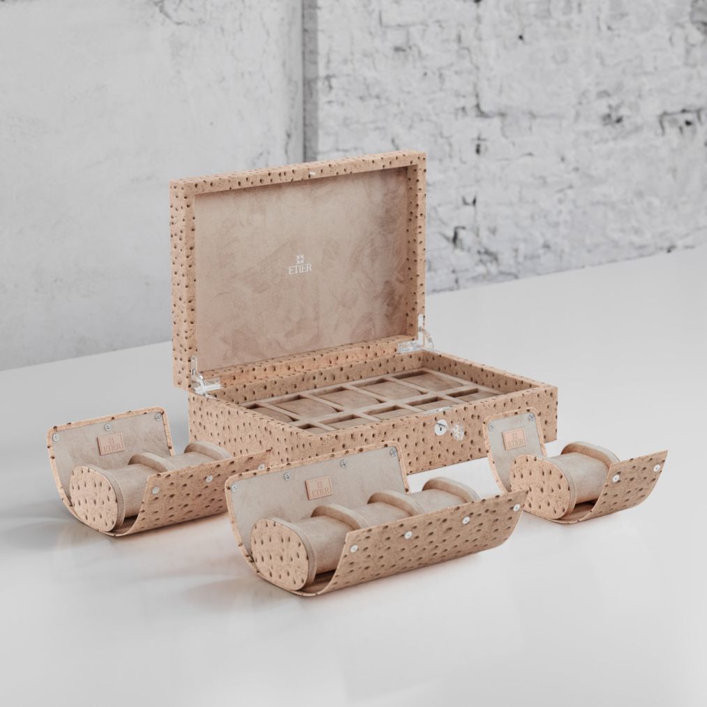 Etier Watch Rolls & Case Light Cappuccino Ostrich Leather Set