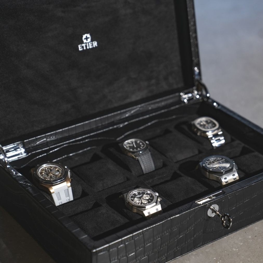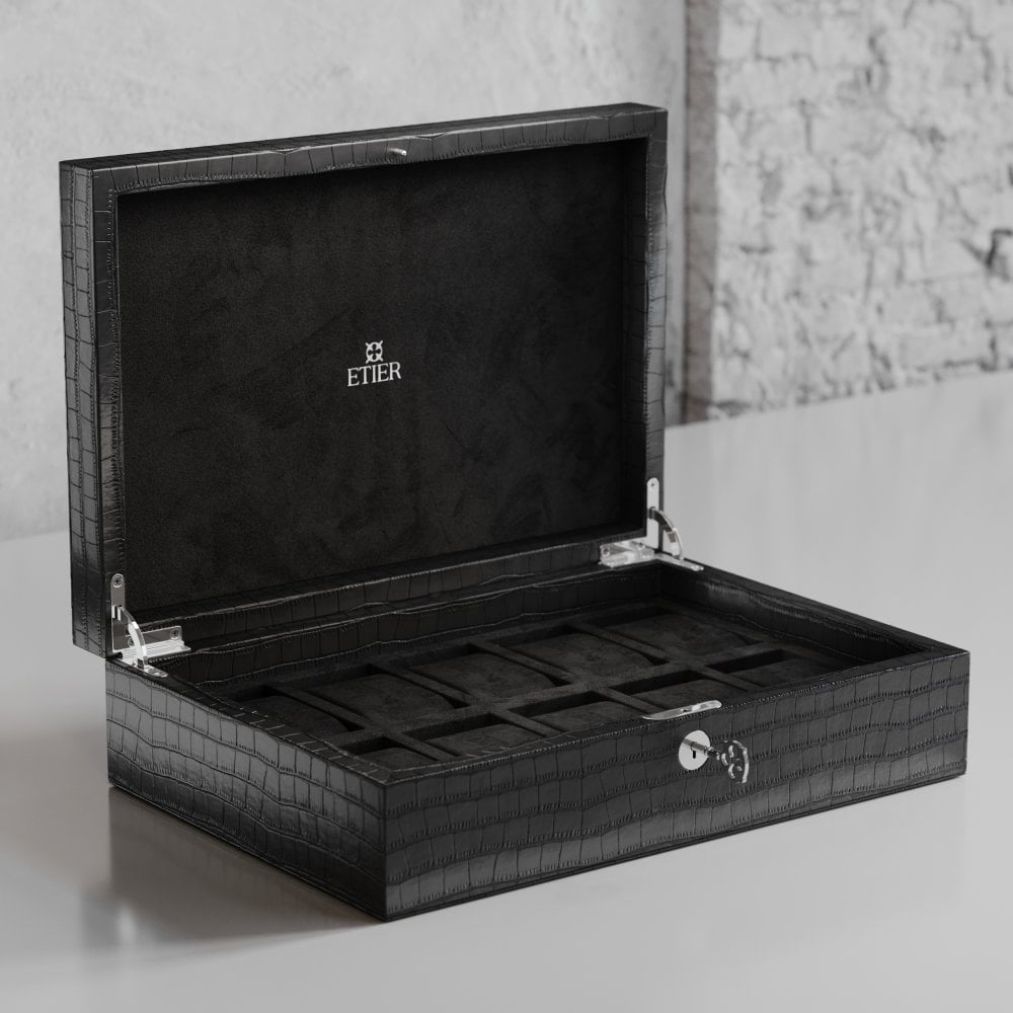 Etier Zegato Ten Watch Case Black Crocodile Leather