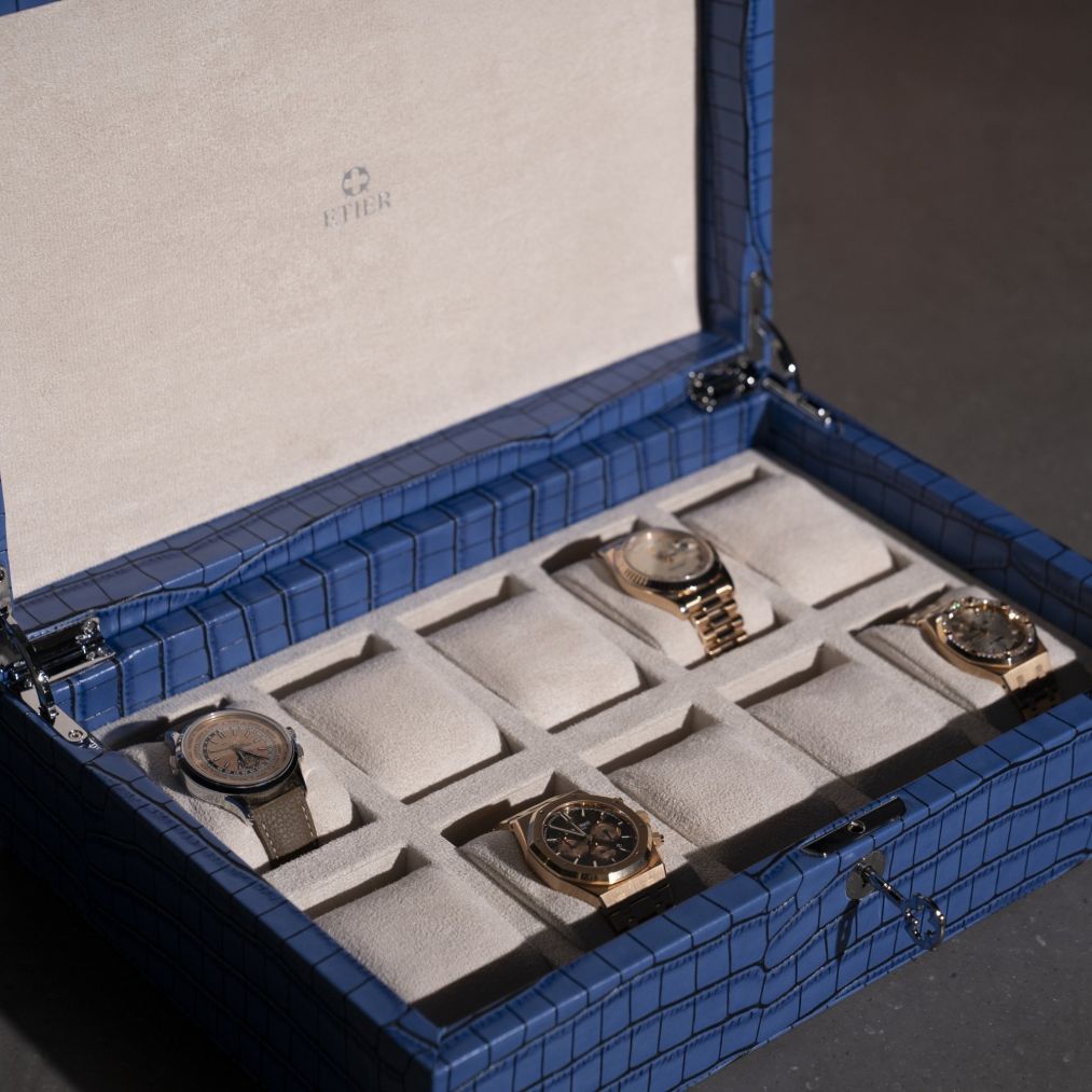 Etier Zegato Ten Watch Case Blue Crocodile Leather